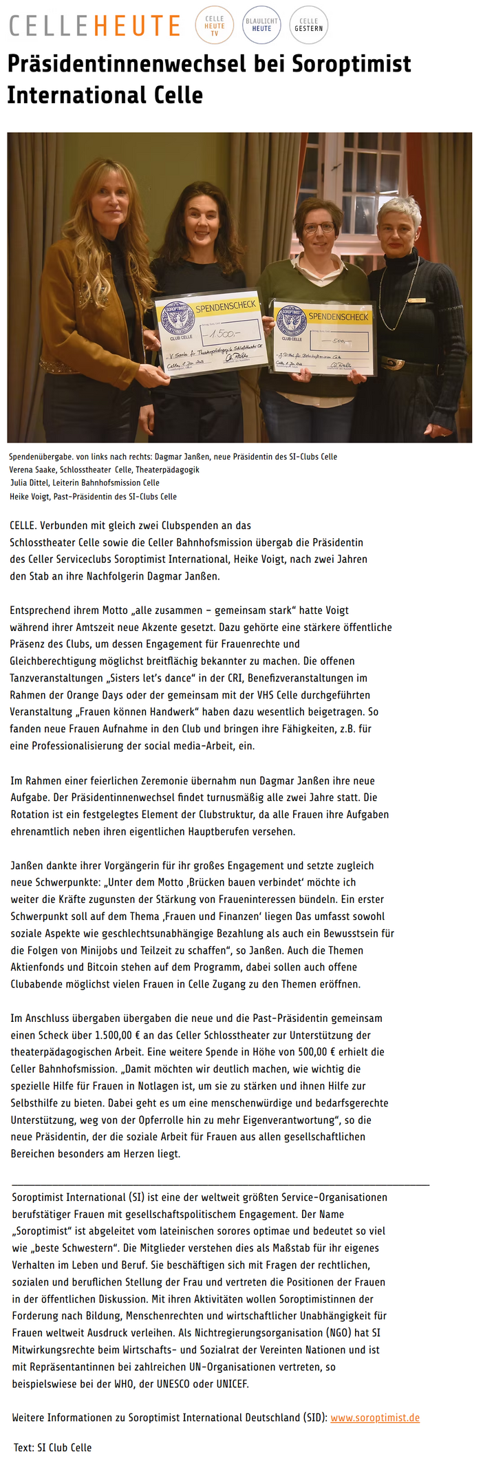 Im August 2015 förderte unser Club den Deutschunterricht für ausländische Frauen. Frau Stumpf nahm die Spende dankend für das Projekt entgegen.